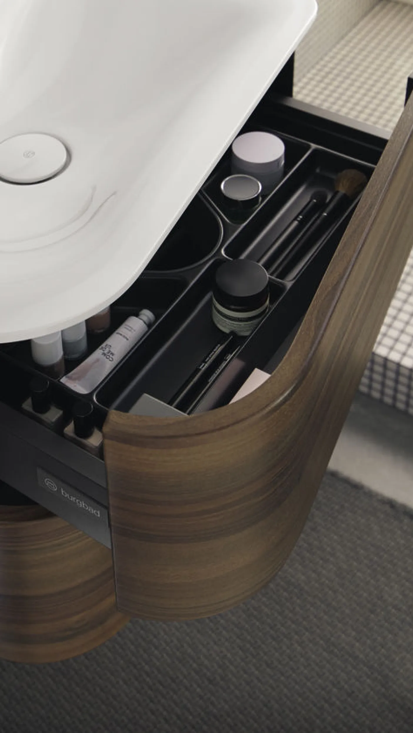 Generell überzeugen die Waschtische mit optimalem Raumverhalten. Selbst die Doppelwaschtische schaffen in ihrer geschwungenen Form mehr Bewegungsfreiheit und eignen sich ideal für Schlauchbäder. Ein weiterer Vorteil der asymmetrischen Form: große seitliche Ablageflächen.