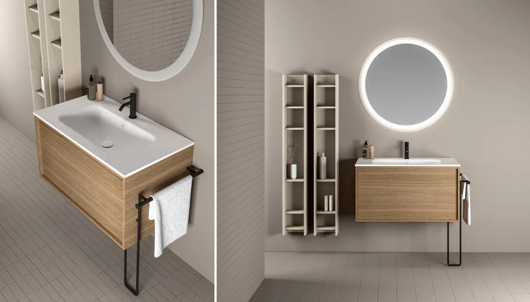 Loop 53 ist die modulare Lösung für individuelle Badkonzepte, mit Unterschränken, offenen Mittelschränken sowie Front- oder Seitenabschlüssen
