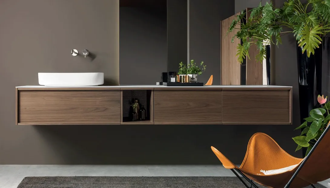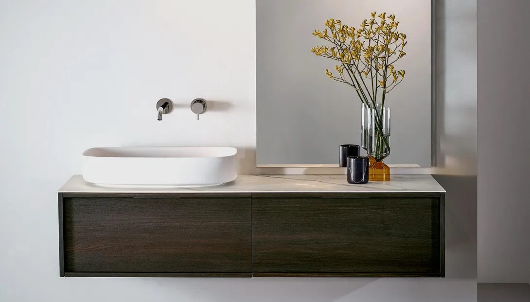 Loop ist ein System hängender Badmöbel mit elegantem, zeitlosem Design. Die Proportionen sind so entwickelt, dass sie großzügigen Stauraum bieten, bei einer Tiefe, die optimal auf moderne Wohn- und Badkonzepte abgestimmt ist.