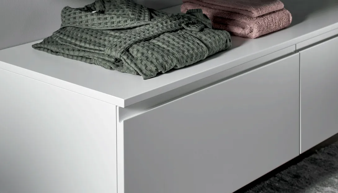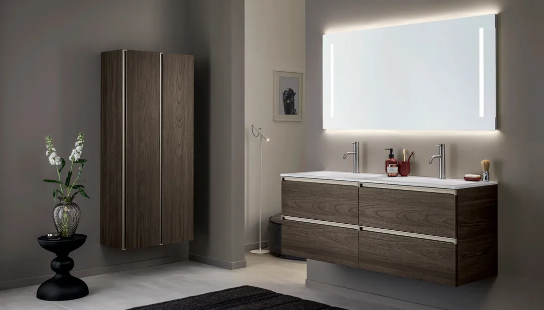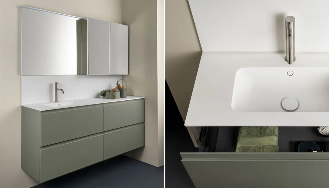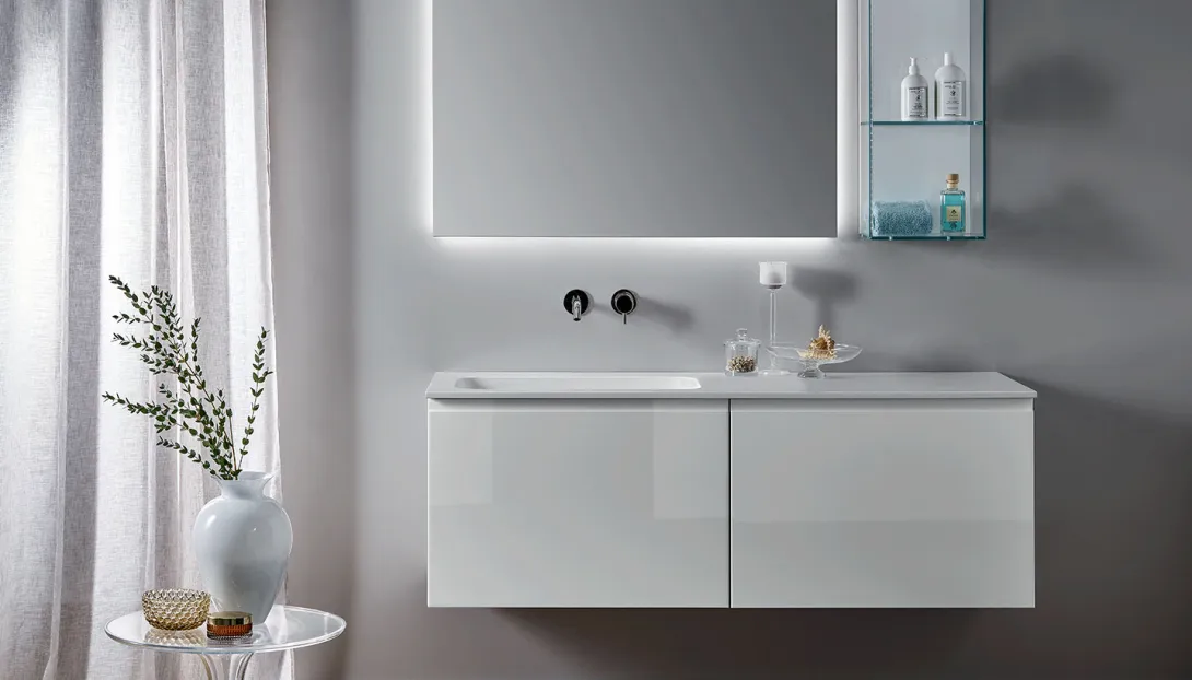 - Kombinierbar mit integrierten Becken, Aufsatzwaschbecken, offenen Elementen und Unterschränken